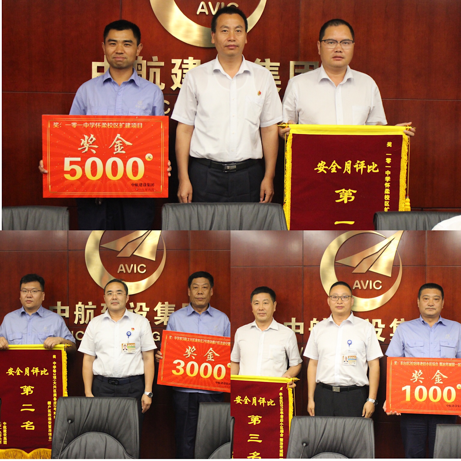 会议最后,集团公司总经理王建红,副总经理、总工程师陈劲,工程管理部副部长王晓彬分别为在此次评比中分获一二三名的一零一中学怀柔校区改建工程、大兴区庞各庄棚户区改造安置房、丰台区2018年老旧小区综合整治芳城园一区项目颁发锦旗和奖金。