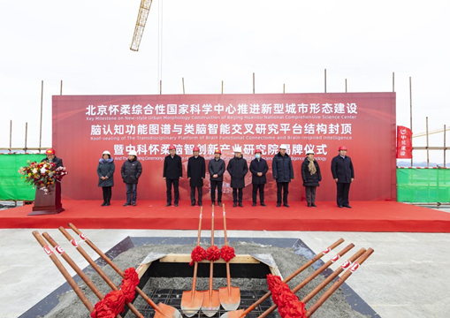 脑认知功能图谱与类脑智能交叉研究平台项目是11个“十三五”科教基础设施之一,法人单位是中科院自动化研究所。建成后,将为类脑科学和人工智能技术的发展进步,提供技术和手段支撑。伴随该项目主体结构封顶,中科怀柔脑智创新产业研究院同步揭牌。